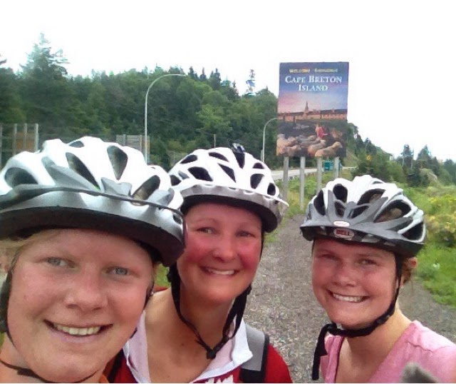 (Cate) In the wee hours of the morning, some drunk guys walked by our tent. Now, it wasn't the classiest location we've had yet since we were camped in the small forested area behind a cemetery, but we just wanted to sleep in peace. One guy lashed out at our tent and said 'We are about to fight something.. Cougars.. Bears.' Thankfully, he had a same friend who told him to leave us be. I was genuinely worried for a while and refused to leave the tent until it was light out. We packed up camp quickly and had breaky at timmies so we could brush our teeth and fill up on water. We biked the 68 km into Antigonish by 10:30 AM. The brew pub, Townhouse, had been recommended to us. Sadly, we arrived more than 5 hours before they were set to open- how inconsiderate they are to thirsty bikers. We set out biking after having lunch and reached CAPE BRETON ISLAND. The rest of this trip will officially be spent solely on islands! Upon our arrival, we went to a grocery store to get food and clean up. By clean up, I'm talking 3 sweaty bikers + a 64 pack of huggies wet wipes + 1 public washroom. Not our classiest 'shower,' but it sufficed. We arrived at Shindigs, a local pub at 3:59 PM. It looked closed so we got worried, but this time luck was in our favour as the opening time was 4 PM! We had a few drinks and played crib, a nice afternoon hangout. There was a stage in a park just down the street, complete with a picnic table and electrical outlets, so we set up camp there for the night. We made dinner and then relaxed for the rest of the evening.